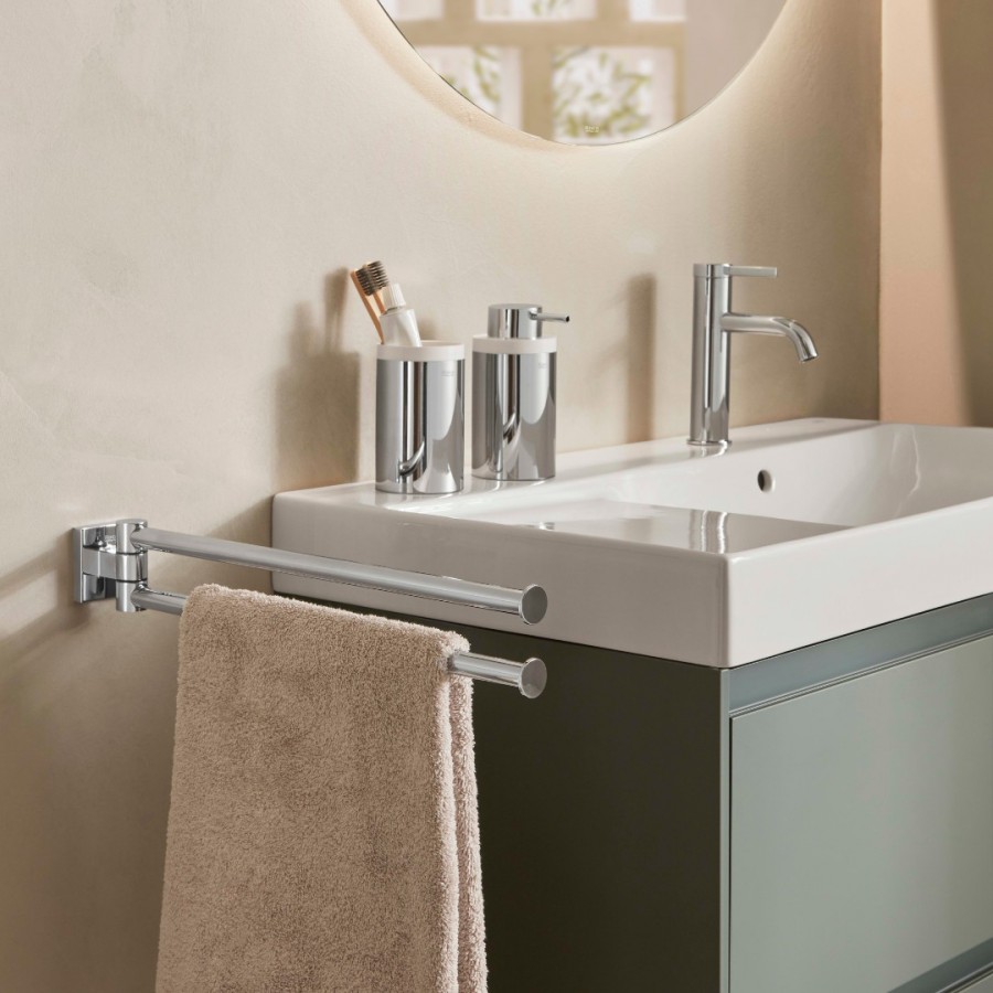 Opis produktu Roca Hotels 2.0 wieszak na ręcznik dwuramienny chrom A817578C00