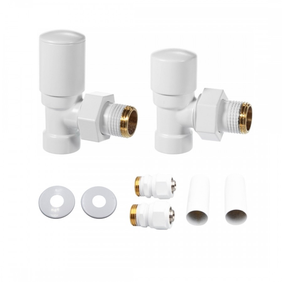 Zestawy regulacyjne kątowe przeznaczone są do montażu na grzejniku w instalacji dwururowej po stronie przewodu zasilającego. GW ½” / GZ ½”.Kolor: biały matowy.