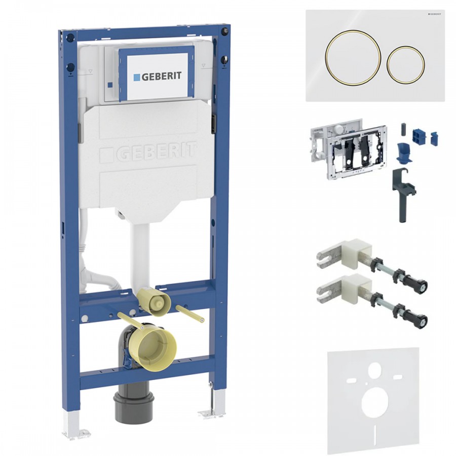 Opis produktu Geberit Duofix DuoFresh stelaż podtynkowy 5w1 kompletny gotowy do montażu przycisk Sigma20 biały/pozłacany 46409