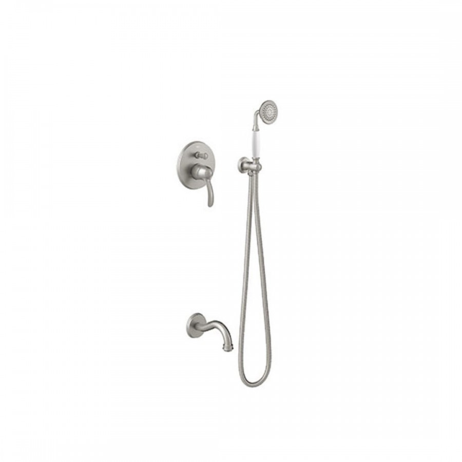 - zestaw składa się z baterii podtynkowej, wylewki wannowej, węża, uchwytu prysznicowego z przyłączem kątowym oraz słuchawki prysznicowej
