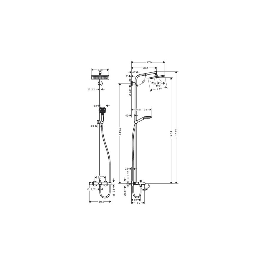 - głowica prysznicowa Crometta E 240, kwadratowa 240 x 240 mm