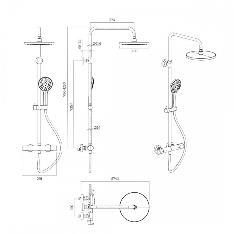 - bateria z przełącznikiem, deszczownica, słuchawka prysznicowa, wąż prysznicowy, drążek prysznicowy