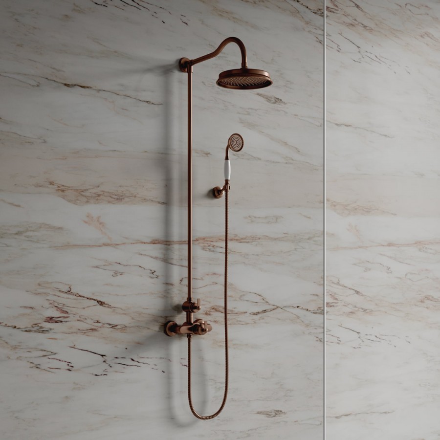 Opis produktu Omnires Armance zestaw natryskowy termostatyczny deszczownica 22,5 cm retro miedź antyczna AM5244/6ORB