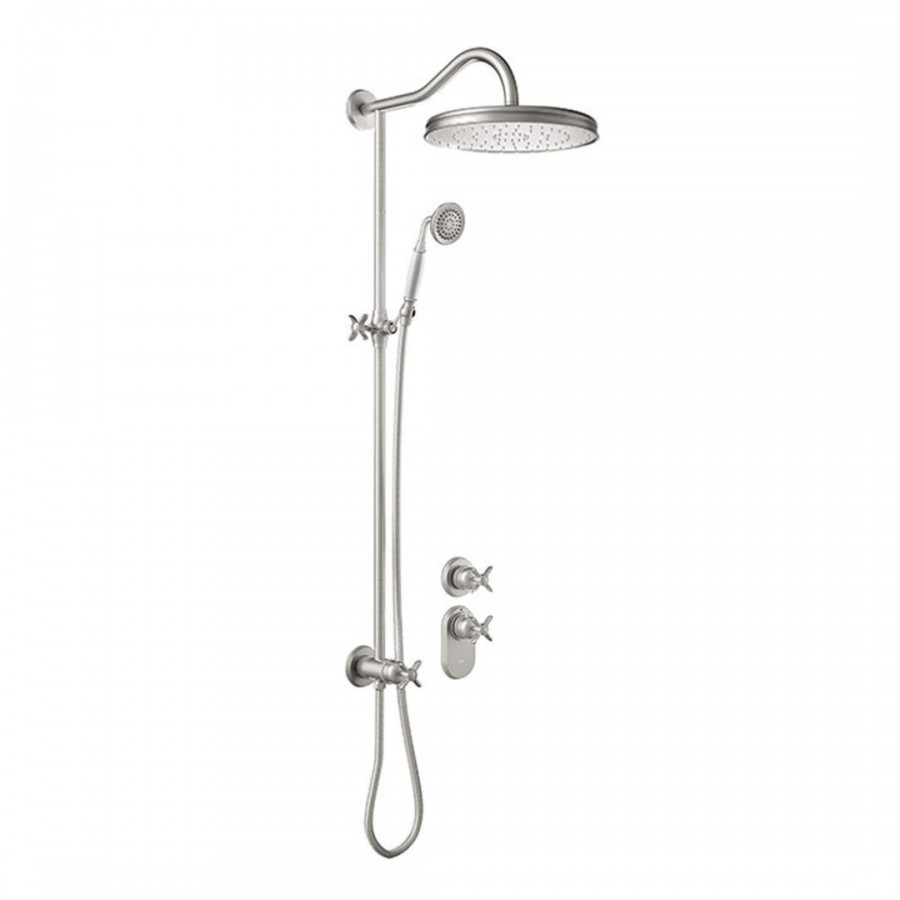 - zestaw składa się z baterii podtynkowej termostatycznej, deszczownicy Ø 310 mm, węża oraz słuchawki prysznicowej