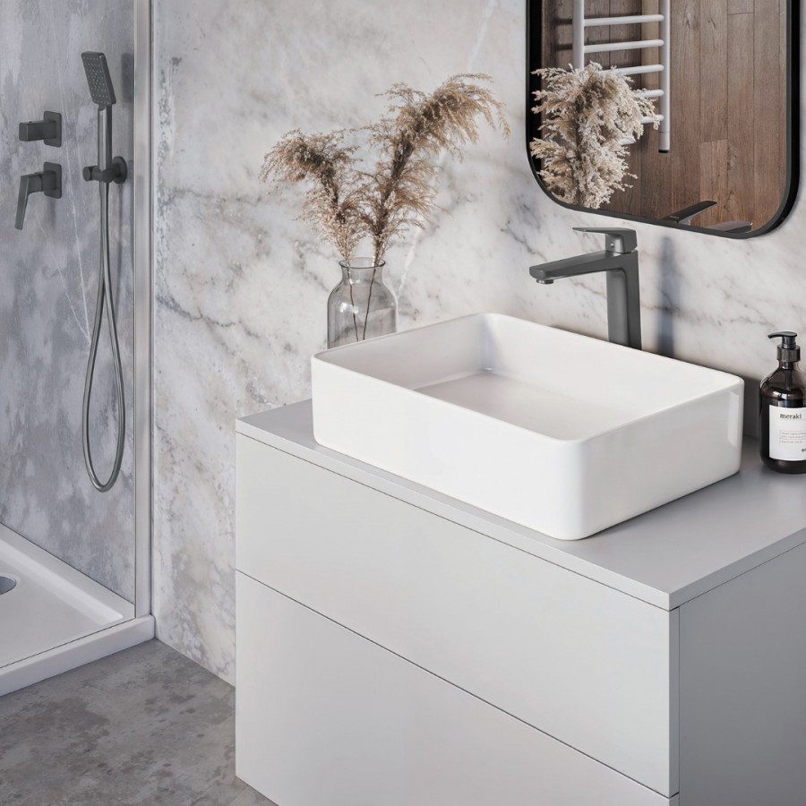 Opis produktu Deante Blur zestaw prysznicowy podtynkowy deszczownica 25 cm titanium NQL_D9YK