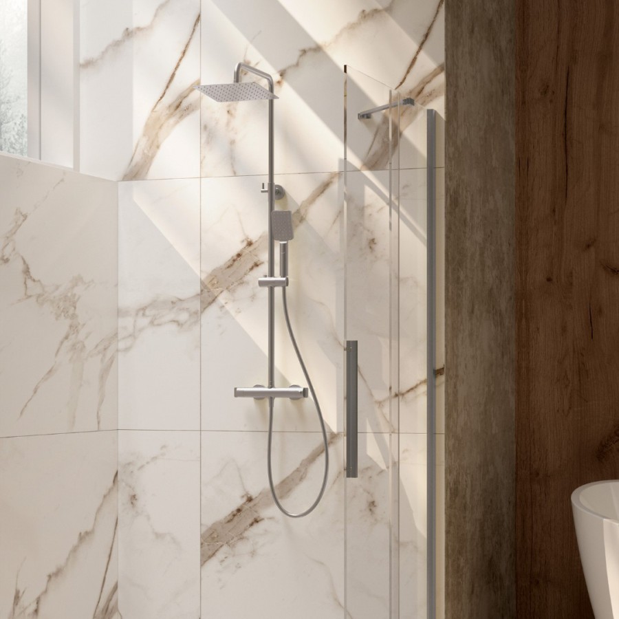 Opis produktu Deante zestaw prysznicowy ścienny termostatyczny stal szczotkowana NAC_F4HT