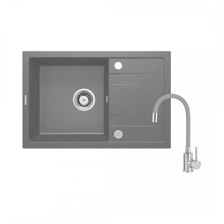 Opis produktu Deante Corio zlewozmywak granitowy 67x44 cm szary metalik z baterią szary/stal ZRCPS113