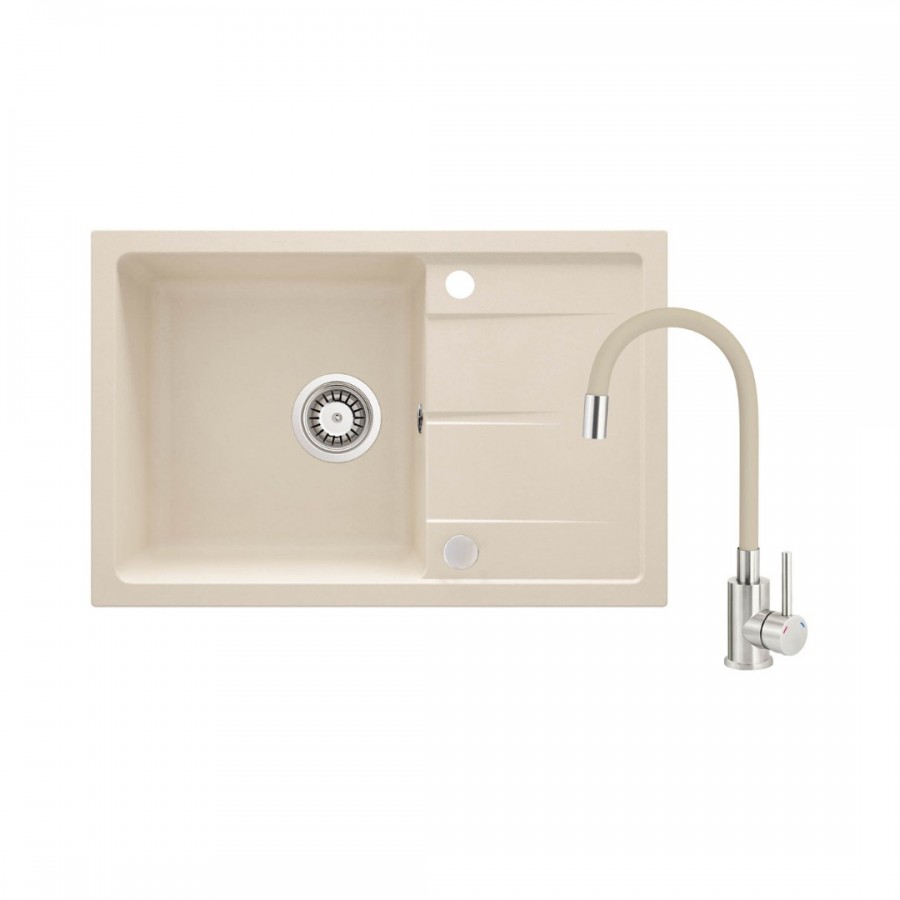 Opis produktu Deante Leda zlewozmywak granitowy 67x44 cm z baterią beżowy ZRDG5113