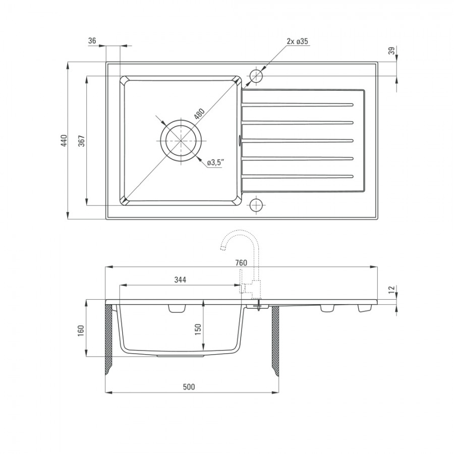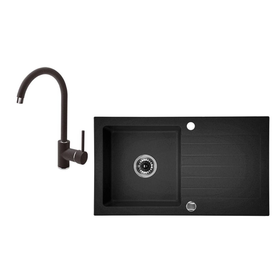 Zlewozmywak z 1 komorą z ociekaczem 76x44 cm, z otworem na baterię, syfonem oraz automatycznym zamknięciem odpływu. Odporny na przebarwienia, uderzenia, szok termiczny i wysoką temperaturę (250°C). W komplecie z baterią kuchenną jednouchwytową, z wylewką w kształcie litery U, z aeratorem i napowietrzeniem strumienia wody.Deante Zorba zlewozmywak 1-komorowy z ociekaczem z baterią stojącą ZQZV2113