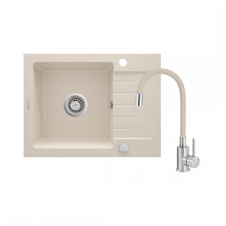 Opis produktu Deante Zorba zlewozmywak granitowy 58x44 cm z baterią beżowy ZQZG511A