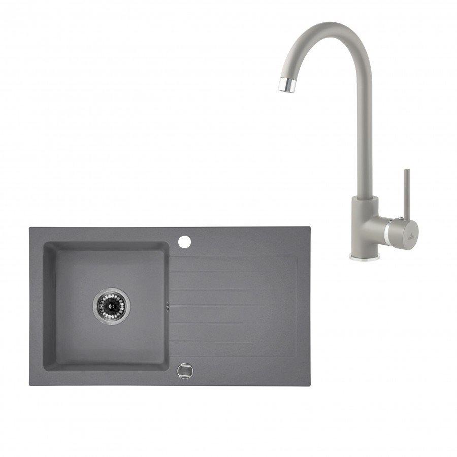 Opis produktu Deante Zorba zlewozmywak granitowy 76x44 cm z baterią kuchenną Milin szary ZQZBS113