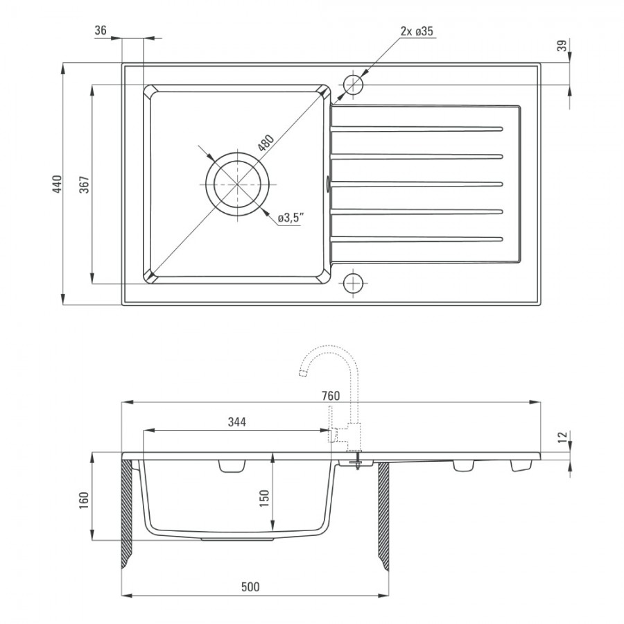 - zlewozmywak granitowy 1-komorowy - szary metalik