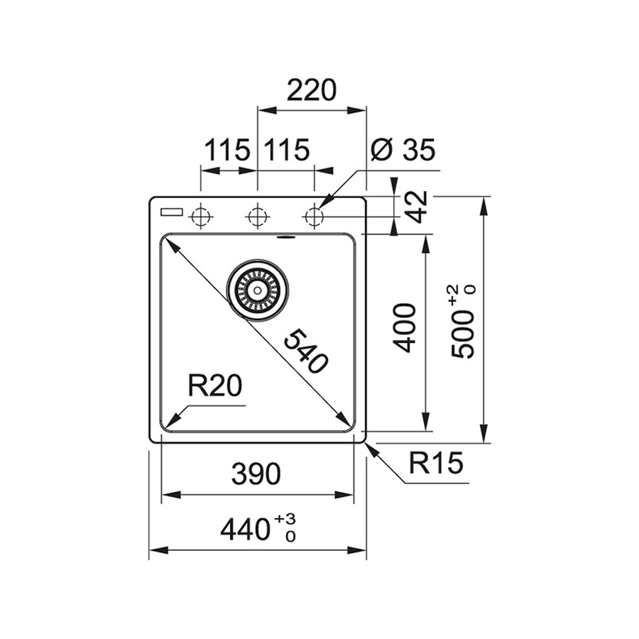 Opis produktu Franke Centro CNG 610-39 TL zlewozmywak 44x50 cm Fragranit+ czarny mat 114.0626.957