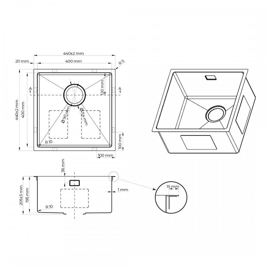 Opis produktu Oltens Stalvask zlewozmywak stalowy 1-komorowy 44x44 cm stal polerowana 71100100